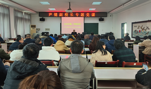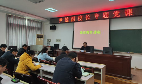 2022年1月11日上午,学校党委委员、副校长尹健在逸夫楼633为联系的机电工程学院、物流与交通学院教职工讲授专题党课并作廉政教育讲座。