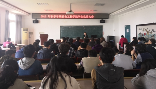 10月22日中午,机电工程学院学生各支部书记、全体学生党员共80余人在逸夫楼633报告厅召开2018年秋季学期机电工程学院学生党员大会,专题学习《中国共产党纪律处分条例》和省委第十巡视组进驻我校巡视动员会上讲话精神,会议由院汪柯岑老师主持。