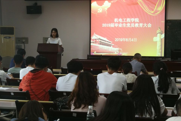 为做好机电工程学院2019届毕业生党员离校前的教育与管理工作,6月4日在逸夫楼633召开了毕业生党员教育大会。出席此次大会的有学院党委书记严爱军,辅导员陈星、汪柯岑、吕飞舟、武辰、李玲玉,大会由党委副书记蒋炳春主持。