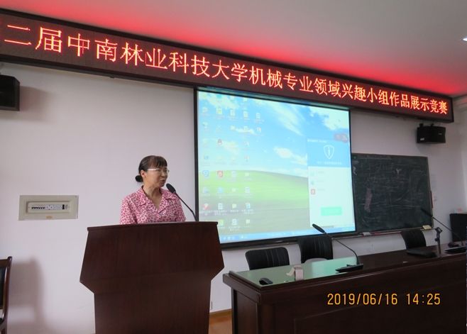 2019年6月16日下午,我院举行了第二届中南林业科技大学机械专业领域兴趣小组作品展示竞赛。竞赛开幕式由机械设计制造及其自动化专业负责人易春峰老师主持。闵淑辉副院长在开幕式上讲话,她勉励同学们努力学习专业知识,积极锻炼各种能力,培养责任感和使命感,希望同学们通过专业领域兴趣小组活动,建立对专业更深沉的热爱,通过不断深入的参与实际项目,养成自主学习习惯,形成创新思维,培养出解决复杂工程问题的能力,逐步建立工程自信。并预祝竞赛圆满成功;然后,易春峰老师宣布奖励方案和竞赛程序,下午2点10分,竞赛正式开始。