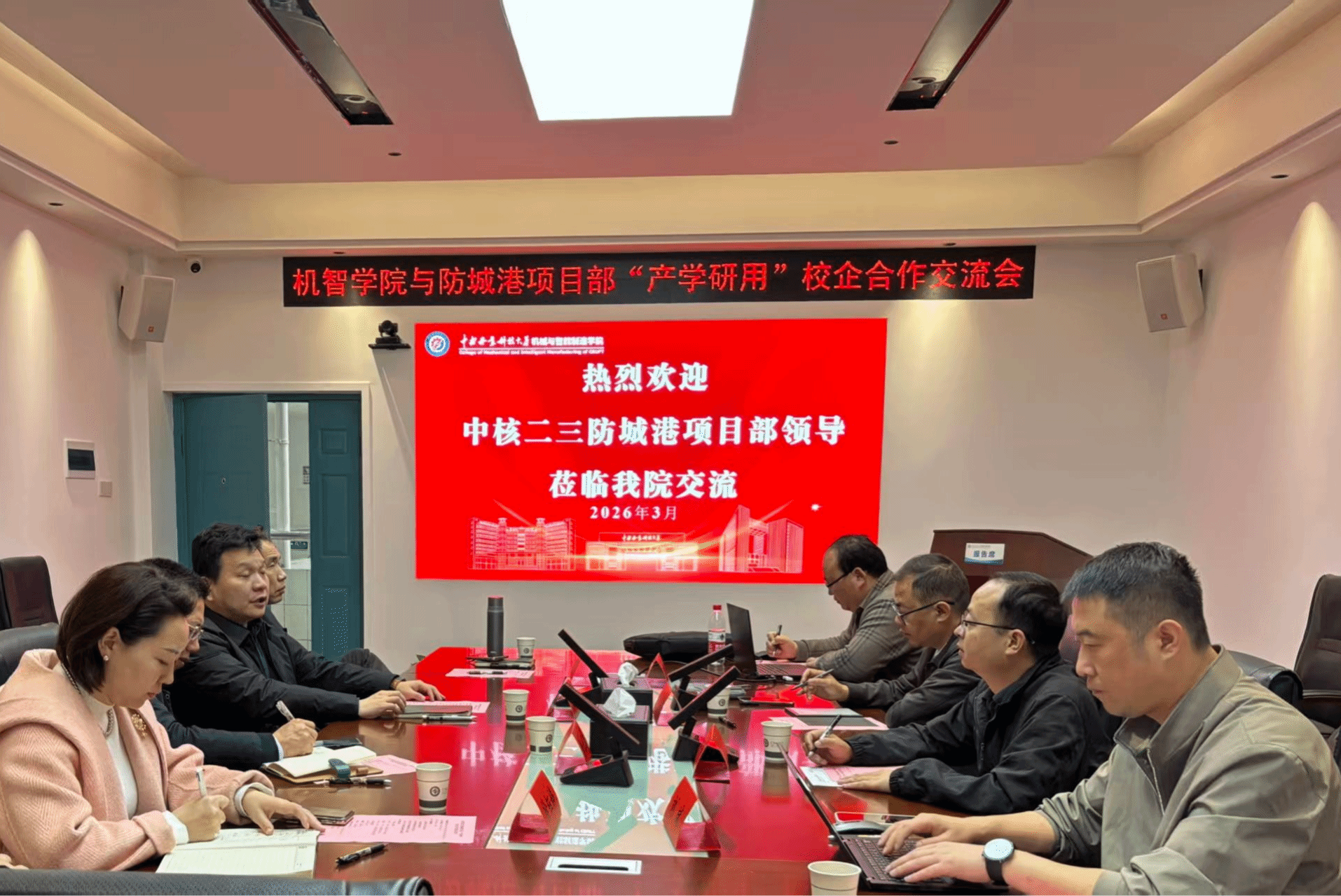 3月26日,中国核工业二三建设有限公司防城港项目部总经理及项目负责人一行到访我院,学院领导班子及课题负责人李科军老师参加交流。双方围绕智能装备研发与机器人施工班组建设展开深度交流,并共同见证2024年“揭榜挂帅”课题阶段性成果——“核工程智能打孔机器人”顺利下线。