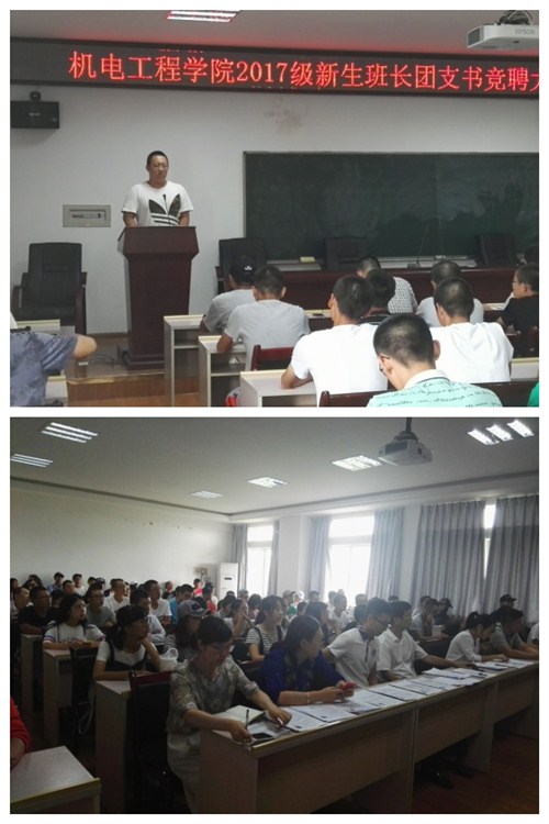 9月22日下午,机电工程学院于逸夫楼633报告厅召开了2017级新生班长团支书竞聘大会,参加本次大会的有机电工程学院党委蒋炳春副书记、学生工作办公室全体辅导老师及2017级班长、团支书竞选者。