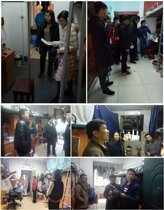 为推进我院学生文明宿舍建设工作,进一步规范学生宿舍管理。11月30日中午,机电工程学院院长李立君,党委书记严爱军,党委副书记蒋炳春,副院长胡劲松、闵淑辉和张立强,,全体辅导员及部分学生干部深入学生宿舍进行全面检查工作。