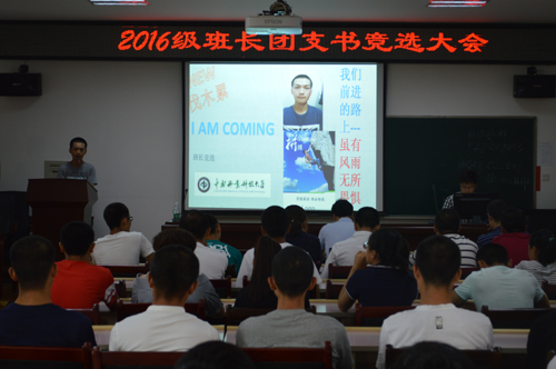 2016年9月23日早8:30,2016级班长团支书竞选大会在逸夫楼633报告厅举行。本次大会由学生会副主席兼团委副书记陈雪莹主持,出席本次大会的有学院党委副书记严爱军,2016级辅导员齐一天老师,14级辅导员汪柯岑老师及团委学生会学生干部。