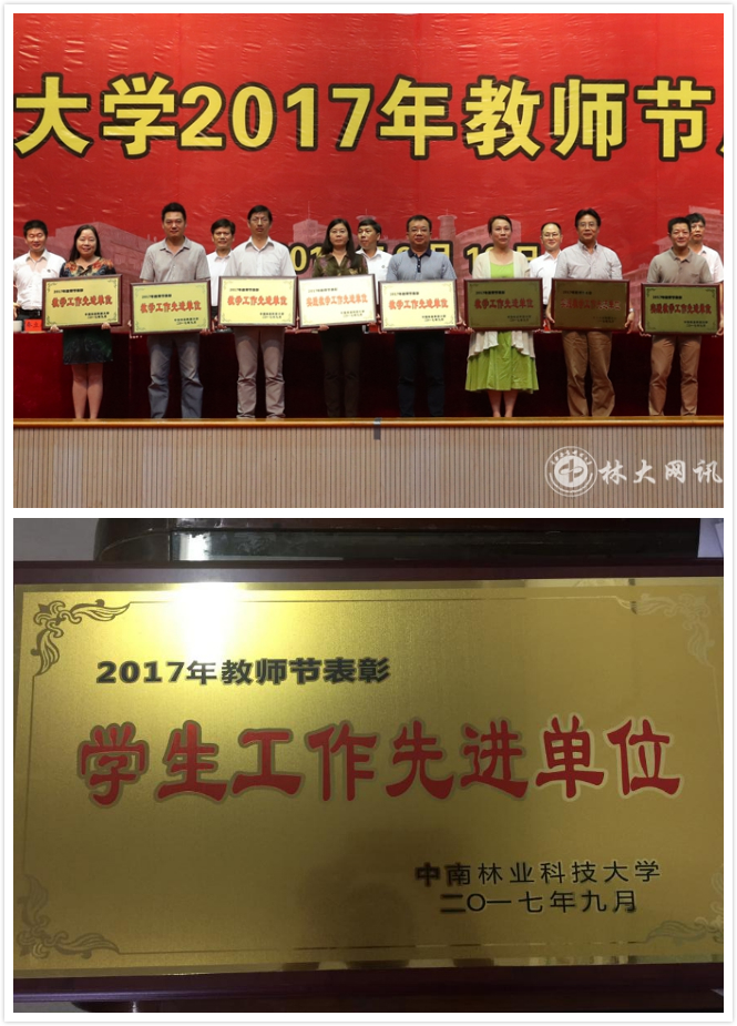 9月10日上午,学校2017年教师节庆祝暨表彰大会在体艺馆举行,大会表彰了一批先进单位和个人。表彰大会由我校党委书记赵运林主持。省林业厅党组书记胡长清出席大会并讲话。省林业厅副巡视员李志勇及相关处室负责人、我校全体校领导、教师代表以及学生代表等参加会议。我院院长李立君、党委书记严爱军、党委副书记蒋炳春、副院长胡劲松、副院长闵淑辉、副院长张立强、辅导员李玲玉及团委学生会代表等参加会议。