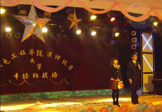 恣肆青春,激情飞扬。2009年11月26日晚,中南林业技科大学机电工程学院“大学-年轻的战场”主题演讲比赛在新食堂四楼晚会中心圆满落下帷幕。机电工程学院辅导员刘蓉老师以及林学院靖磊老师出席了本次活动。机电工程学院学生会主席团及相关部门负责人等担任了本次的评委。