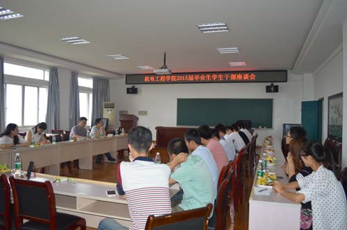 6月10日上午,机电工程学院2015届毕业班学生干部座谈会在逸夫楼633报告厅举行。学院党委书记刘梦飞、院长李立君、副院长闵淑辉和各年级辅导员老师、毕业班学生干部代表参加了本次座谈会。会议由学院党委副书记严爱军主持。