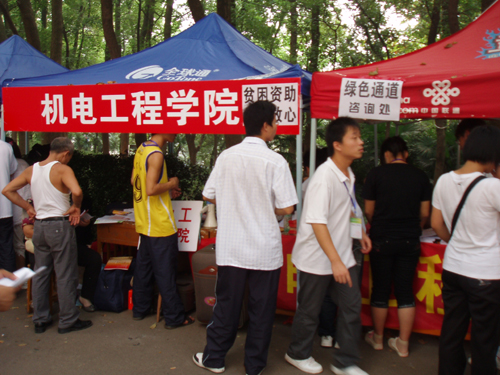 机电工程学院在做了大量准备工作后,怀着饱满的热情和期盼迎接着来自五湖四海的2009级新生,由机电工程学院学生会成员组成的迎新组热情接待了我院2009级新生以及随行的家长,同学们的真诚与热心帮助赢得了新生和家长的一致好评。