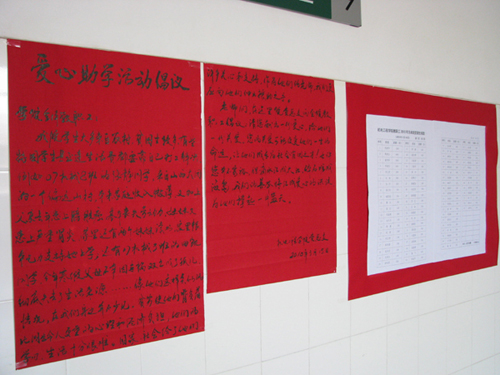 在倡议发出后,学院领导带头,学院各部门、教研室老师积极响应,踊跃捐款,共募得善款9000元。收到捐款后,学工办再次深入各班级了解贫困生具体情况,以确保把这笔善款给最需要的同学。通过各方面了解,学工办提出并报学院党总支批准,确定了第一批四人的资助名单,决定每人资助1000元,剩余部分善款将继续资助我院特困生。学院党总支决定以此为起点,形成我院长期资助贫困生的工作机制。