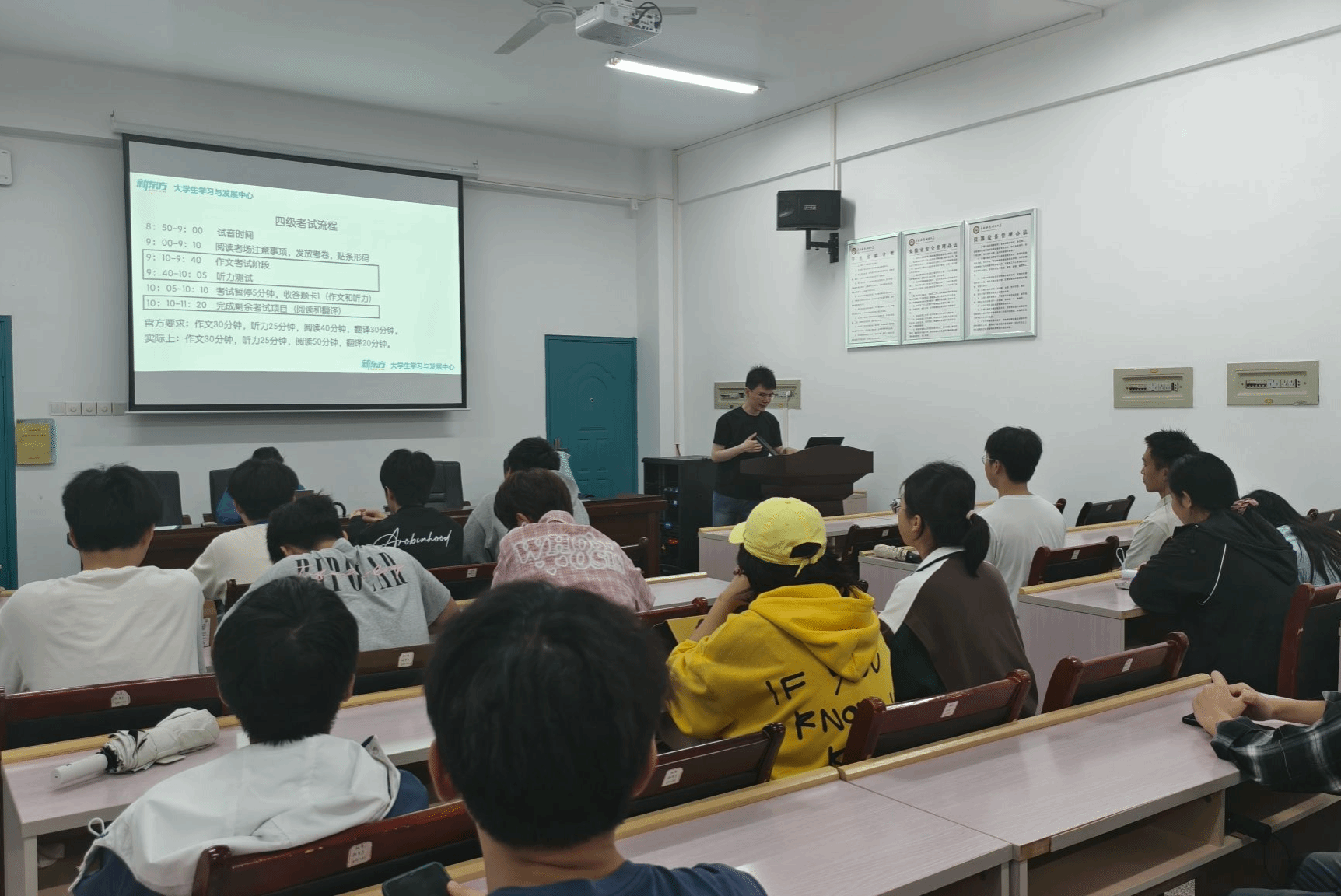 为帮助学生系统梳理语法知识、转变英语学习思维,进一步提升四六级备考效率,2026年4月10日晚7时,机械与智能制造学院在逸夫楼142教室举办第五十五期【智享讲坛】之名师分享会。本次讲座以“思维+方法双突破——英语四六级专题培训”为主题,特邀李敏担任主讲。学院辅导员刘助旺老师主持活动,各年级学生踊跃参与。