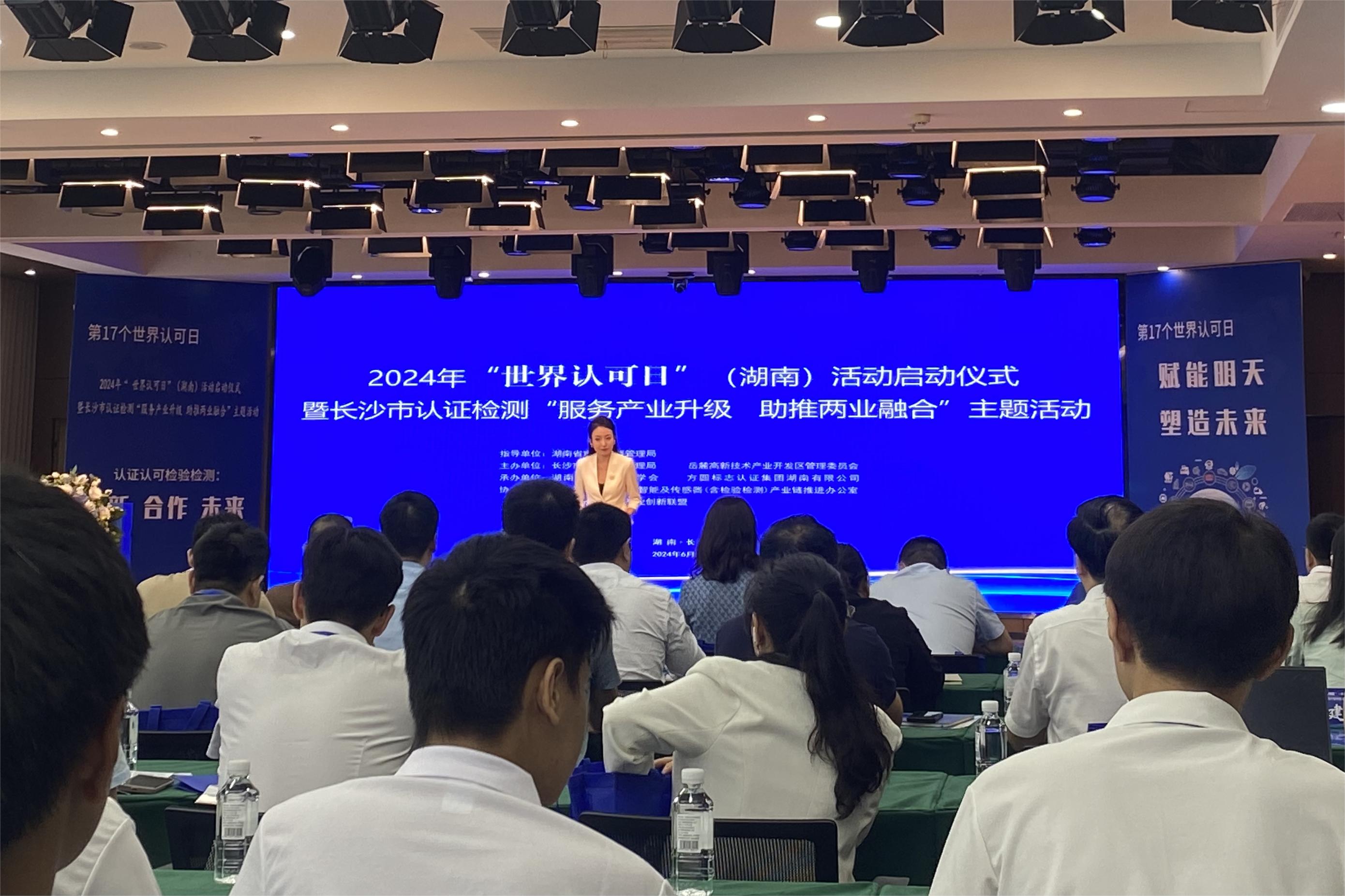 会上湖南湘江新区人工智能及传感器(含检验检测)产业链推进办公室主任、岳麓高新区工委副书记、管委会主任周建华致辞;湖南省市场监督管理局认证监督管理处处长胡新军宣读《总局开展第十七个“世界认可日”活动的通知》精神;长沙市市场监督管理局副局长肖磊宣读《长沙市市场监督管理局关于加快检验检测认证发展工作行动方案》,并发布长沙市检验检测服务高质量发展项目;湖南省市场监督管理局认可和检验检测监督管理处处长高勇波等作出了重要指示。