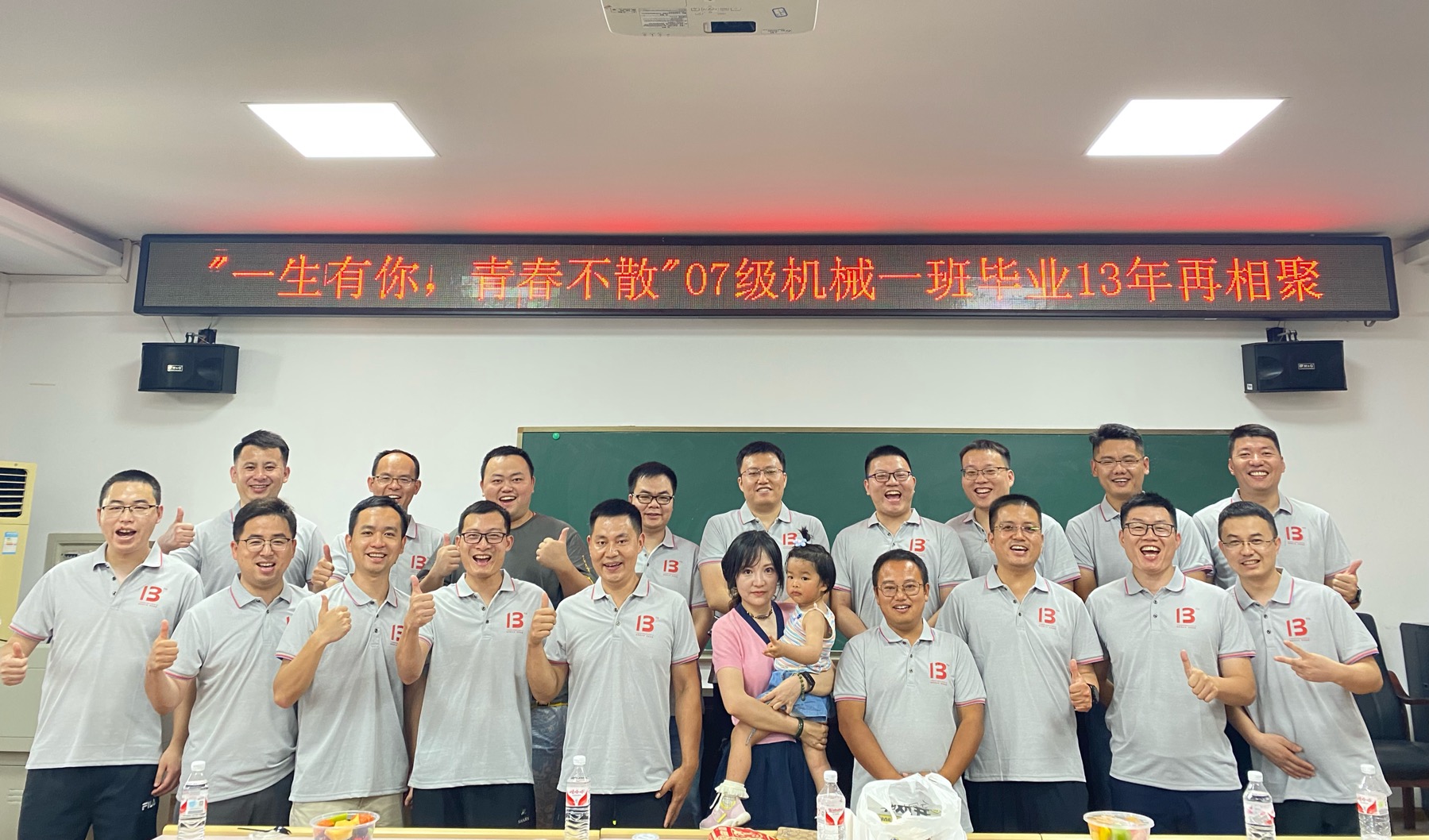 在逸夫楼633教室,校友们重温学生时代,召开了一堂名为“一生有你,青春不散”的特别班会。班会上,点名环节别具一格,即使有些同学未能亲临现场,也有同学“帮忙”答到,代表着大家的心永远在一起。正如这次相聚的主题,校友们纷纷分享在校时的点滴回忆,交流毕业后的职业轨迹,吐露心中母校情结,期待未来有更多相聚的机会。当天还是一位同学的生日,大家齐声唱起生日歌,为这份重逢增添了一份特别的温馨。