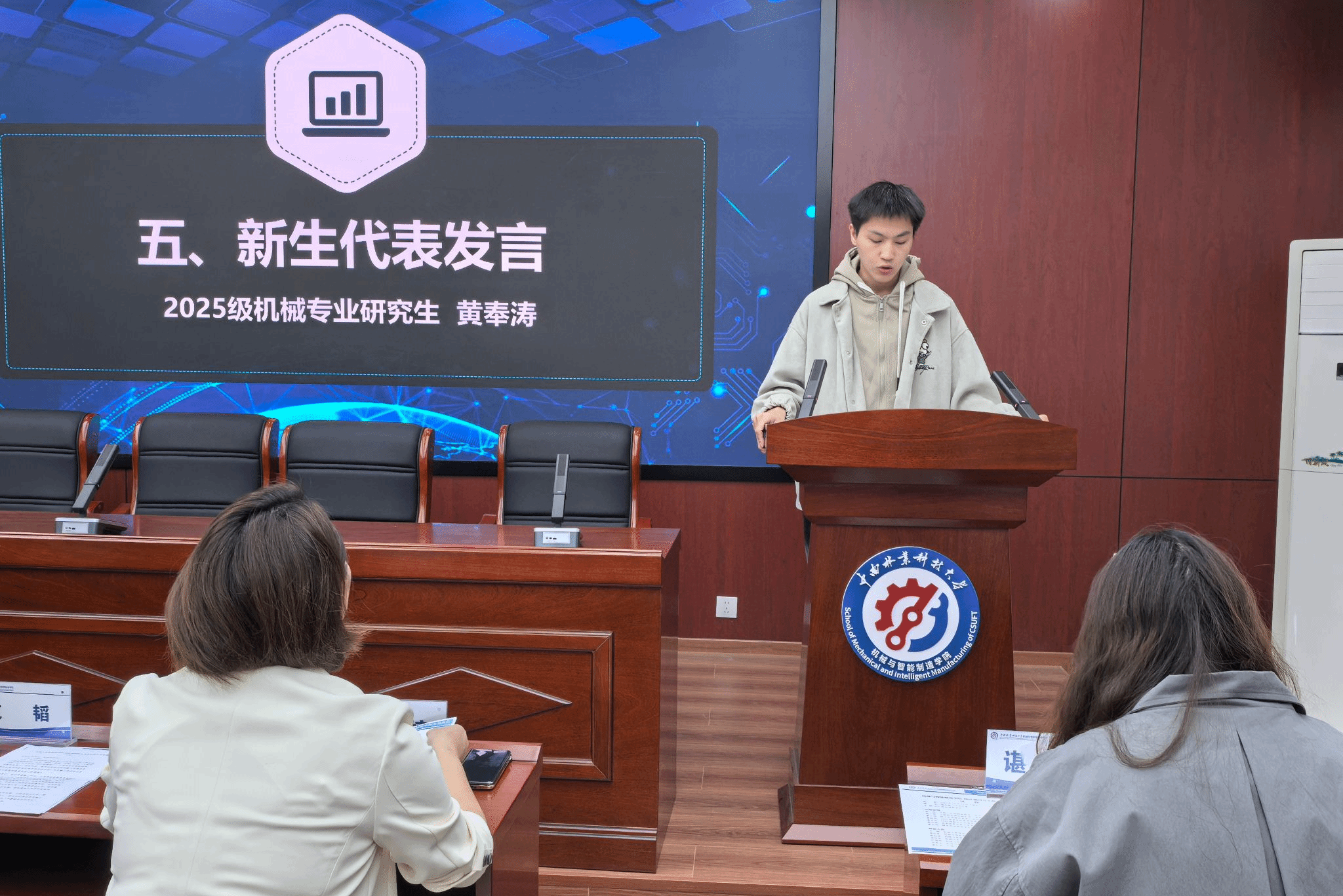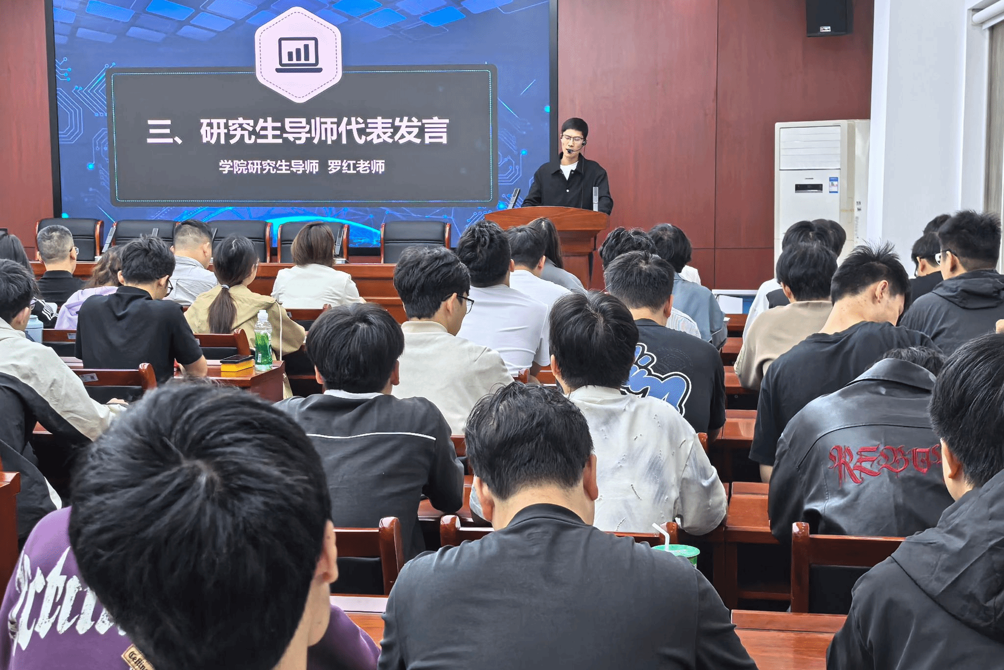 罗红老师结合自身求学经验,勉励同学们制定好科研目标,并积极地与自己的导师交流、沟通,争取在研究生阶段取得自己的满意的成果。接着,2023级硕士研究生贾智博作为研究生国家奖学金获得者,分享了自己的学习经验,鼓励学弟学妹们要制定明确的目标、学会沟通与合作以及保持良好心态与健康的体魄;2025级研究生新生黄奉涛作为新生代表发言,表示将以饱满的热情投入学习与研究,成长为具有扎实专业知识和创新能力的高层次人才,为行业与社会贡献智慧与力量。
