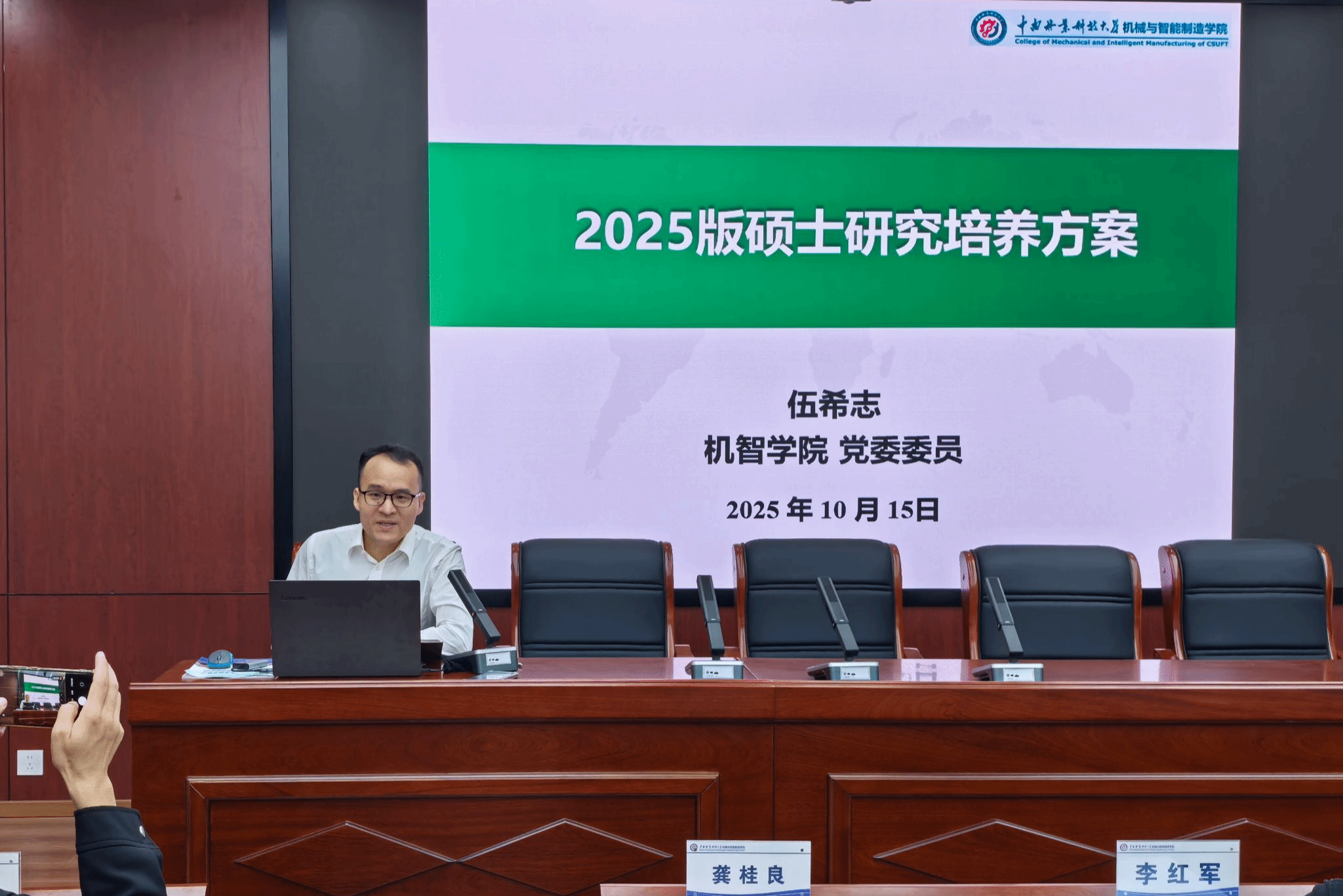 2025年10月16日上午10点,机械与智能制造学院2025级研究生师生见面会在逸夫楼333会议室成功举行。学院院长文韬、党委书记李红军、党委副书记徐钰婷、副院长龚桂良、党委委员伍希志、董昕然老师、研究生秘书陈江、辅导员谌晶晶及2025级全体新生参加会议,会议由院党委副书记徐钰婷主持。