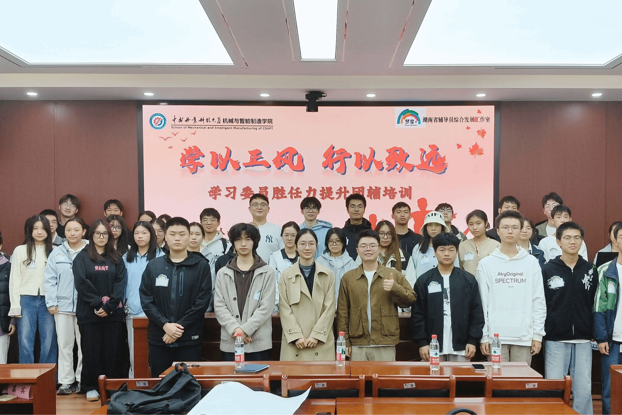 2025年10月29日中午,机械与智能制造学院在逸夫楼333举办了“学以正风 行以致远——学习委员胜任力提升团体辅导培训”。本次活动聚焦学习委员角色认知、人际沟通与学风建设能力提升,通过多元互动形式强化学习委员综合素养,推动班级学风建设。学院辅导员刘助旺、谌晶晶、陈燕洁主讲,2025级、2024级、2023级各班学习委员参与。