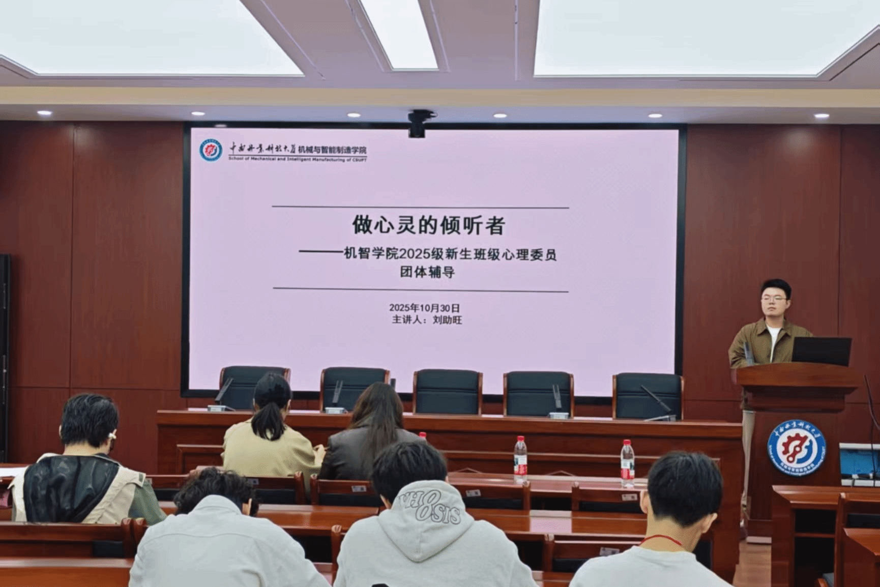 2025年10月30日,机械与智能制造学院于逸夫楼333会议室成功举办“做心灵的倾听者——机智学院2025级新生班级心理委员团体辅导”,学院辅导员刘助旺主讲。