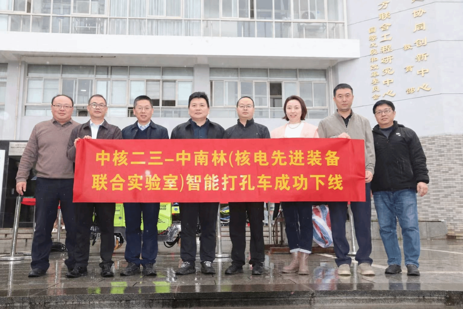 3月26日,中国核工业二三建设有限公司防城港项目部总经理及项目负责人一行到访我院,学院领导班子及课题负责人李科军老师参加交流。双方围绕智能装备研发与机器人施工班组建设展开深度交流,并共同见证2024年“揭榜挂帅”课题阶段性成果——“核工程智能打孔机器人”顺利下线。
