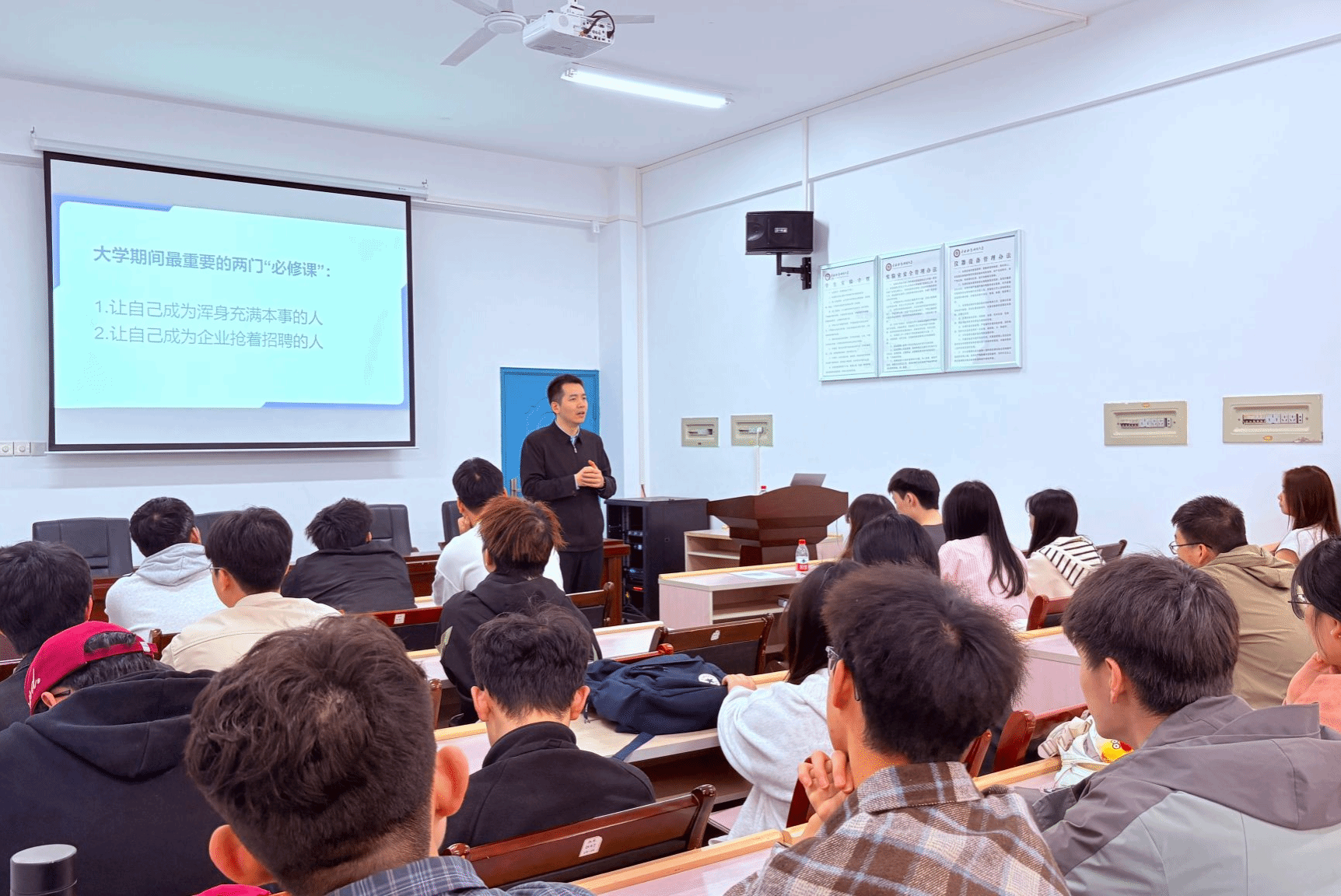 吴振华结合名企用人标准,揭秘高薪人才核心素质与企业看重的关键能力,针对大学各阶段成长给出建议,指导学子平衡学业与综合能力提升。他解读了学院各专业核心竞争力,结合面试场景分享简历制作、表达技巧等实用方法,并鼓励学子以长期主义实现自我提升。在场同学专注聆听、认真记录,纷纷表示分享干货满满,解答了职业规划困惑,明确了学习与就业方向。