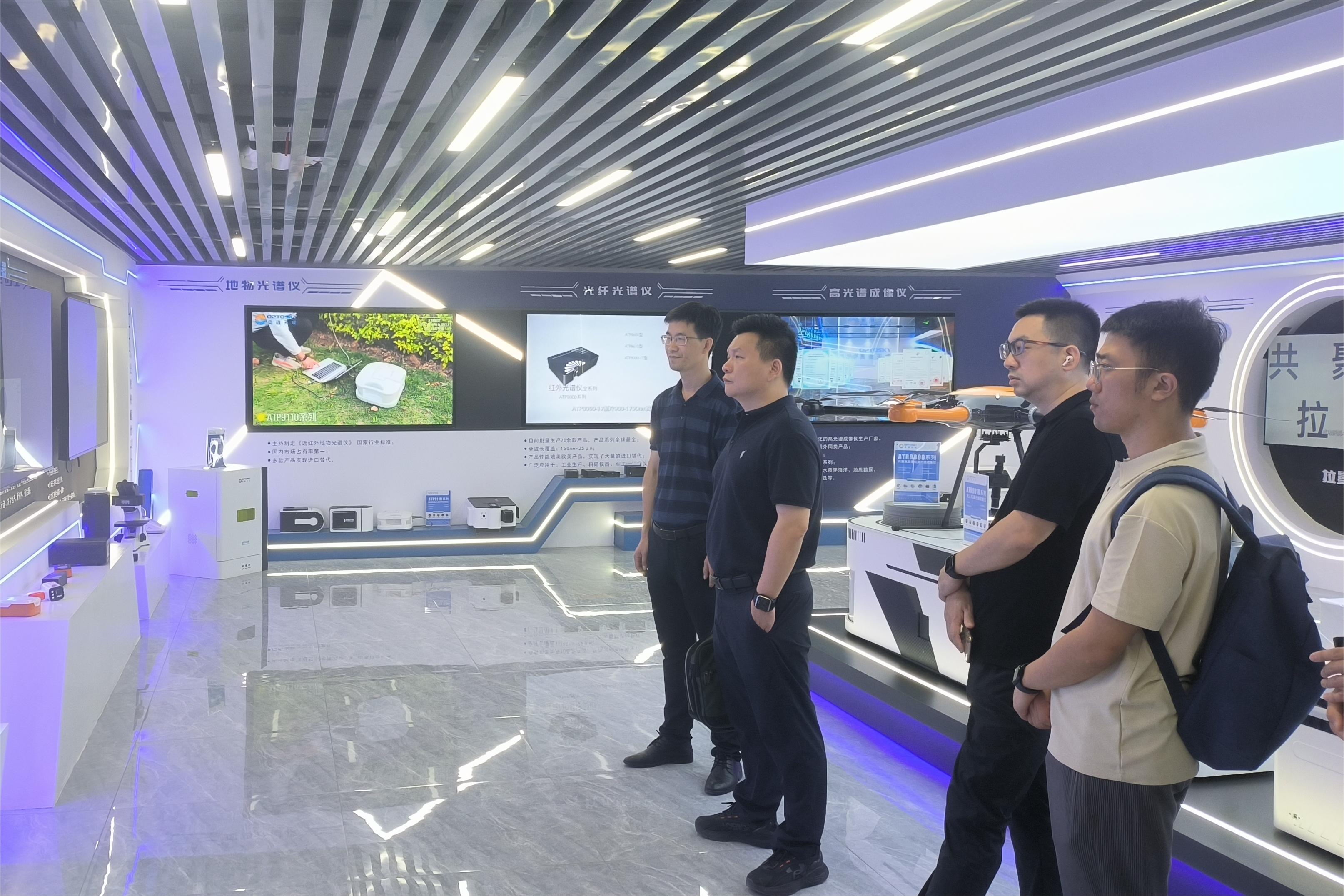 文韬一行首先参观了奥普天成公司的研发中心,详细了解了公司的发展历程、企业文化以及在光谱分析仪器领域的技术创新和市场应用情况。随后,双方在公司会议室举行了座谈会。