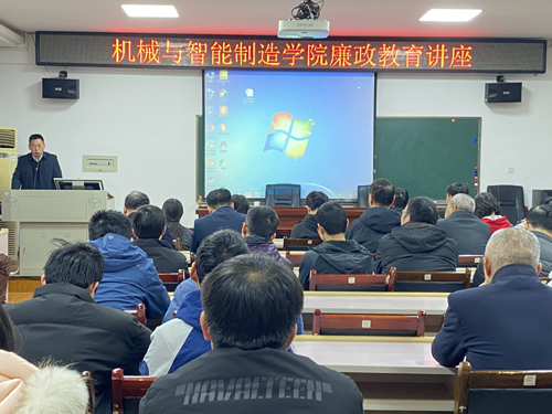 3月8日上午,机械与智能制造学院党委书记李红军在逸夫楼633报告厅为全体教职工作廉政教育专题讲座。