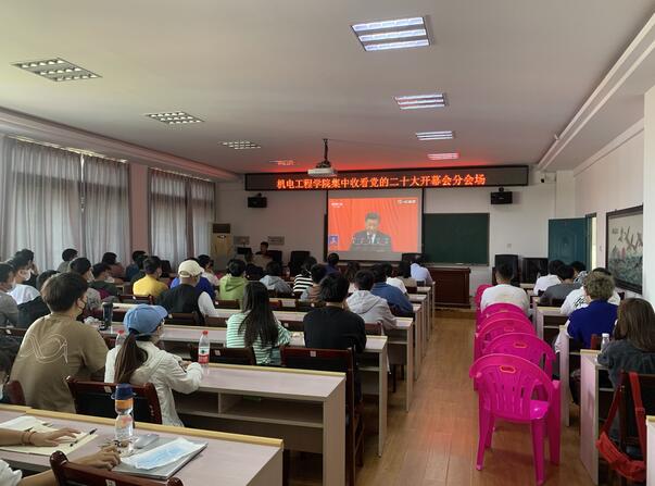 10月16日,中国共产党第二十次全国代表大会在北京人民大会堂开幕。上午10点,机电工程学院组织师生代表在逸夫楼633分会场集中收听收看党的二十大开幕会盛况,其他教师和学生通过多种形式收听收看实况转播。