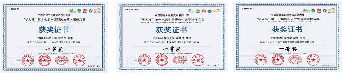 近日,从“华为杯”第十七届中国研究生数学建模竞赛组委会处传来消息,我院硕士研究生范子彦、霍皓灵、邹敏团队在本次竞赛中荣获一等奖。