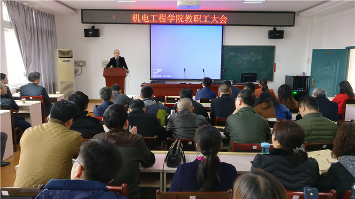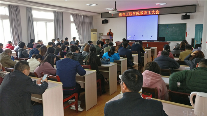 3月14日下午,机电工程学院在逸夫楼633会议室召开新学期第一次全体教职工大会。会议由学院党委书记严爱军主持。